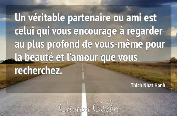 Un véritable partenaire ou ami est celui qui vous encourage à regarder au plus profond de vous-même pour la beauté et l'amour que vous recherchez.