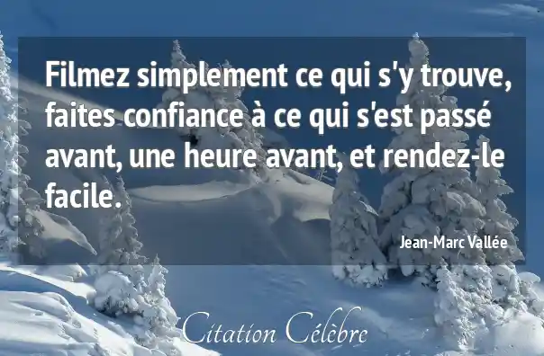 Filmez simplement ce qui s'y trouve, faites confiance à ce qui s'est passé avant, une heure avant, et rendez-le facile.