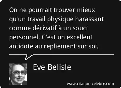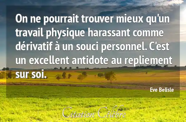 On ne pourrait trouver mieux qu'un travail physique harassant comme dérivatif à un souci personnel. C'est un excellent antidote au repliement sur soi.