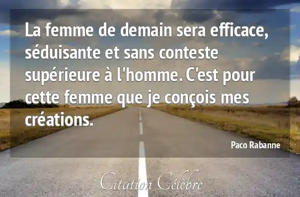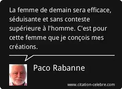 La femme de demain sera efficace, séduisante et sans conteste supérieure à l'homme. C'est pour cette femme que je conçois mes créations.