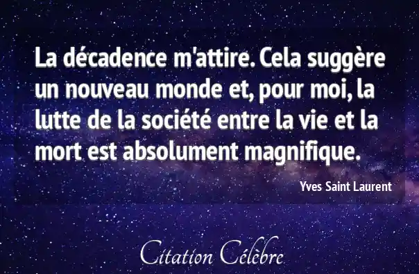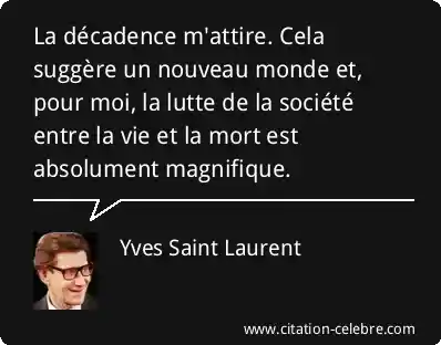 La décadence m'attire. Cela suggère un nouveau monde et, pour moi, la lutte de la société entre la vie et la mort est absolument magnifique.