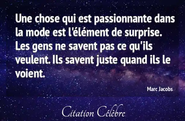 Une chose qui est passionnante dans la mode est l'élément de surprise. Les gens ne savent pas ce qu'ils veulent. Ils savent juste quand ils le voient.