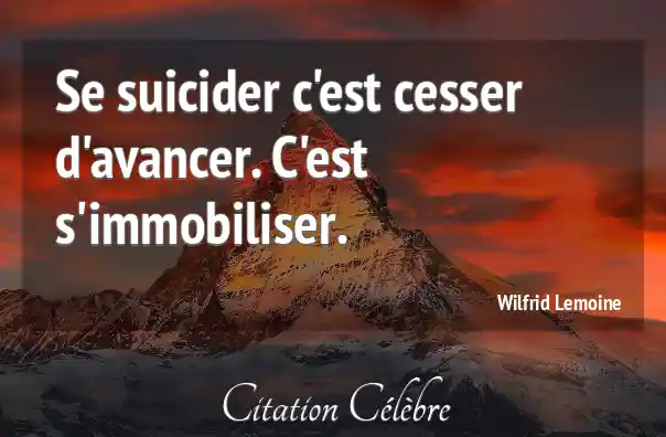 Se suicider c'est cesser d'avancer. C'est s'immobiliser.