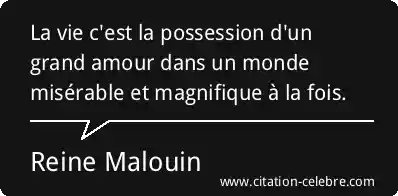 La vie c'est la possession d'un grand amour dans un monde misérable et magnifique à la fois.