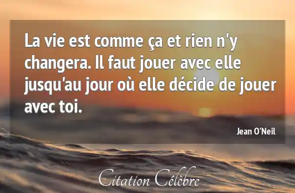 La vie est comme ça et rien n'y changera. Il faut jouer avec elle jusqu'au jour où elle décide de jouer avec toi.