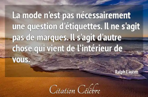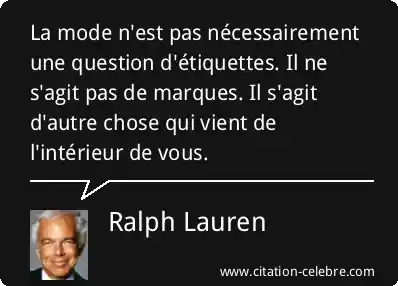 La mode n'est pas nécessairement une question d'étiquettes. Il ne s'agit pas de marques. Il s'agit d'autre chose qui vient de l'intérieur de vous.