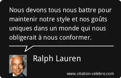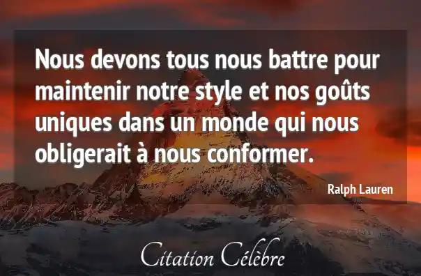 Nous devons tous nous battre pour maintenir notre style et nos goûts uniques dans un monde qui nous obligerait à nous conformer.