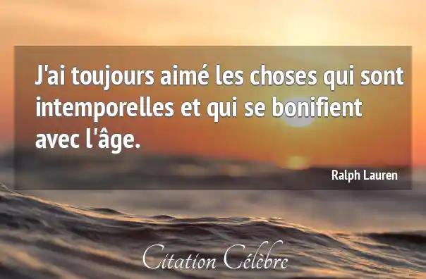 J'ai toujours aimé les choses qui sont intemporelles et qui se bonifient avec l'âge.