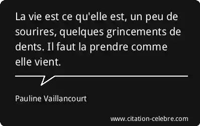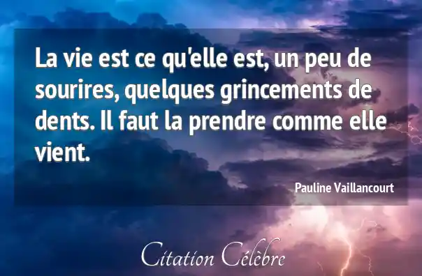 La vie est ce qu'elle est, un peu de sourires, quelques grincements de dents. Il faut la prendre comme elle vient.