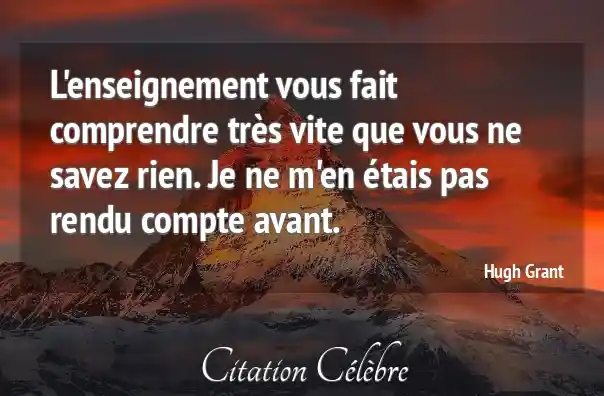 L'enseignement vous fait comprendre très vite que vous ne savez rien. Je ne m'en étais pas rendu compte avant.