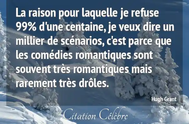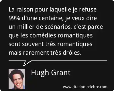 La raison pour laquelle je refuse 99% d'une centaine, je veux dire un millier de scénarios, c'est parce que les comédies romantiques sont souvent très romantiques mais rarement très drôles.