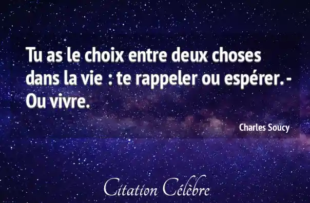 Tu as le choix entre deux choses dans la vie : te rappeler ou espérer. - Ou vivre.