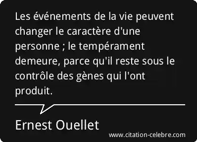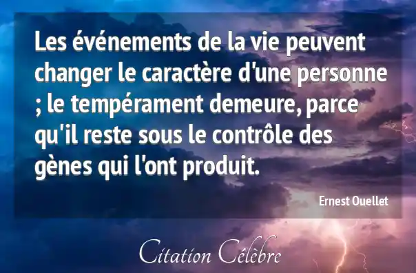 Les événements de la vie peuvent changer le caractère d'une personne ; le tempérament demeure, parce qu'il reste sous le contrôle des gènes qui l'ont produit.