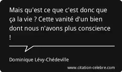 Mais qu'est ce que c'est donc que ça la vie ? Cette vanité d'un bien dont nous n'avons plus conscience !