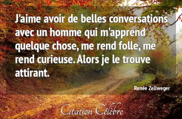 J'aime avoir de belles conversations avec un homme qui m'apprend quelque chose, me rend folle, me rend curieuse. Alors je le trouve attirant.