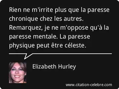 Rien ne m'irrite plus que la paresse chronique chez les autres. Remarquez, je ne m'oppose qu'à la paresse mentale. La paresse physique peut être céleste.
