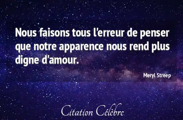Nous faisons tous l'erreur de penser que notre apparence nous rend plus digne d'amour.
