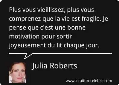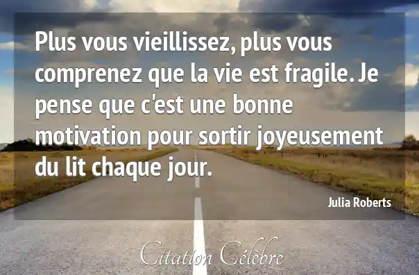 Plus vous vieillissez, plus vous comprenez que la vie est fragile. Je pense que c'est une bonne motivation pour sortir joyeusement du lit chaque jour.
