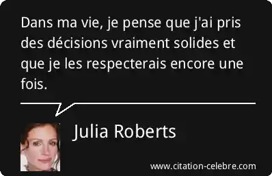 Dans ma vie, je pense que j'ai pris des décisions vraiment solides et que je les respecterais encore une fois.
