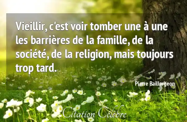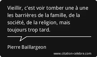 Vieillir, c'est voir tomber une à une les barrières de la famille, de la société, de la religion, mais toujours trop tard.