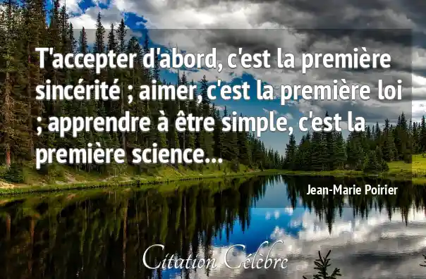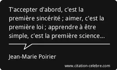 T'accepter d'abord, c'est la première sincérité ; aimer, c'est la première loi ; apprendre à être simple, c'est la première science...