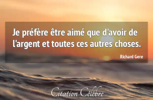 Je préfère être aimé que d'avoir de l'argent et toutes ces autres choses.