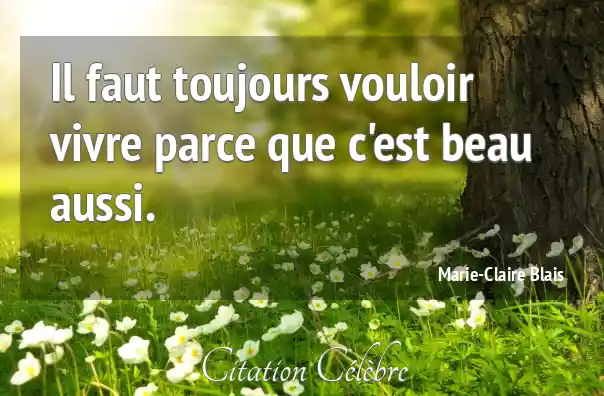 Il faut toujours vouloir vivre parce que c'est beau aussi.