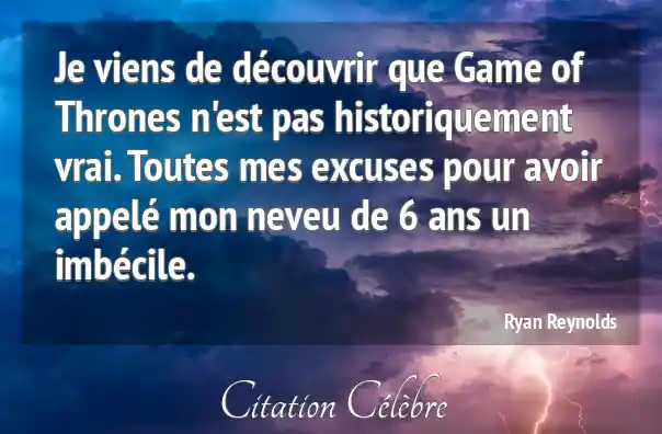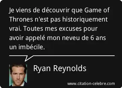 Je viens de découvrir que Game of Thrones n'est pas historiquement vrai. Toutes mes excuses pour avoir appelé mon neveu de 6 ans un imbécile.