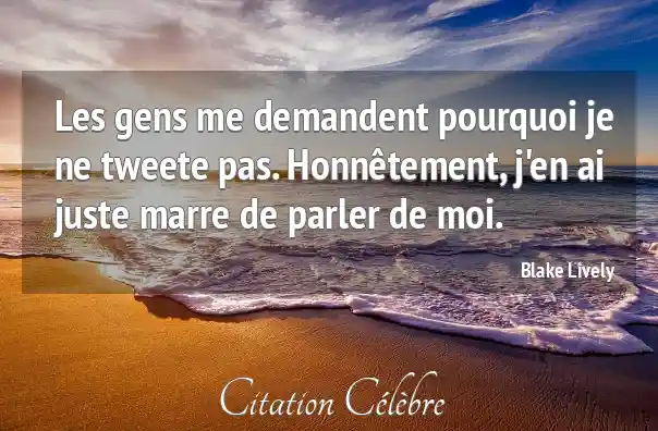 Les gens me demandent pourquoi je ne tweete pas. Honnêtement, j'en ai juste marre de parler de moi.