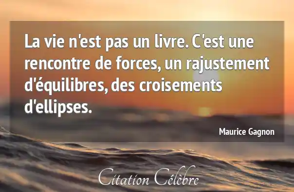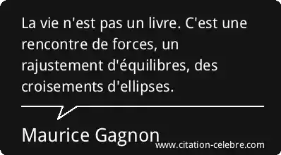 La vie n'est pas un livre. C'est une rencontre de forces, un rajustement d'équilibres, des croisements d'ellipses.