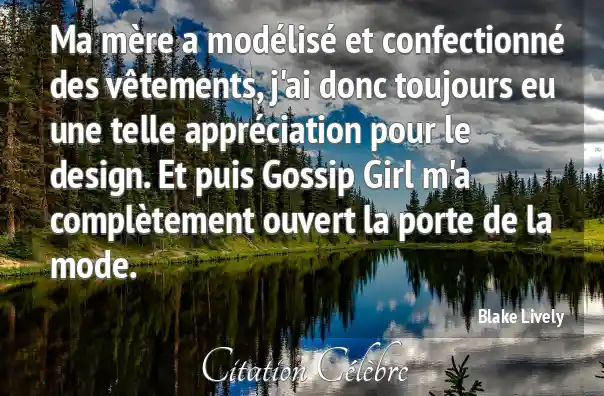 Ma mère a modélisé et confectionné des vêtements, j'ai donc toujours eu une telle appréciation pour le design. Et puis Gossip Girl m'a complètement ouvert la porte de la mode.