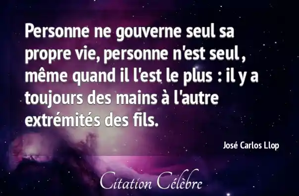 Personne ne gouverne seul sa propre vie, personne n'est seul , même quand il l'est le plus : il y a toujours des mains à l'autre extrémités des fils.
