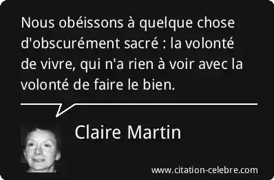 Nous obéissons à quelque chose d'obscurément sacré : la volonté de vivre, qui n'a rien à voir avec la volonté de faire le bien.