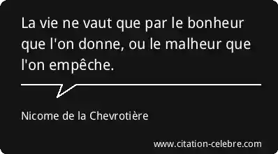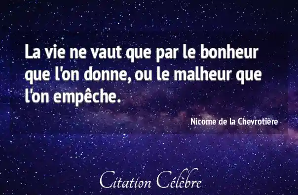 La vie ne vaut que par le bonheur que l'on donne, ou le malheur que l'on empêche.
