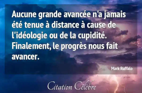Aucune grande avancée n'a jamais été tenue à distance à cause de l'idéologie ou de la cupidité. Finalement, le progrès nous fait avancer.