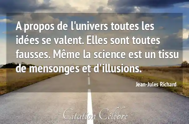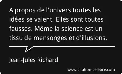 A propos de l'univers toutes les idées se valent. Elles sont toutes fausses. Même la science est un tissu de mensonges et d'illusions.
