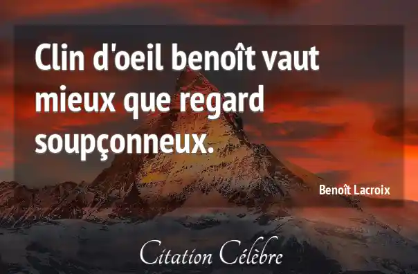 Clin d'oeil benoît vaut mieux que regard soupçonneux.