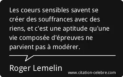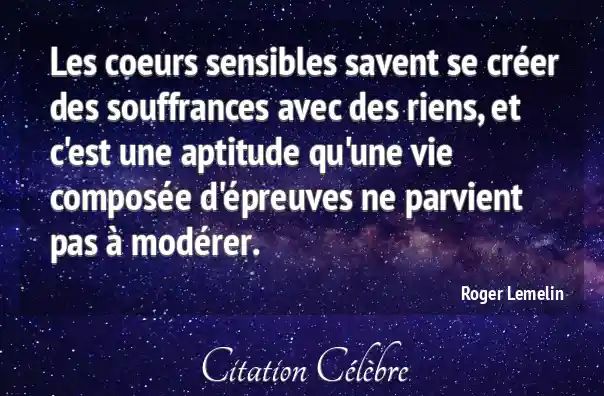 Les coeurs sensibles savent se créer des souffrances avec des riens, et c'est une aptitude qu'une vie composée d'épreuves ne parvient pas à modérer.