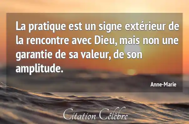 La pratique est un signe extérieur de la rencontre avec Dieu, mais non une garantie de sa valeur, de son amplitude.