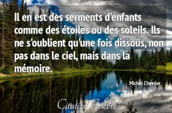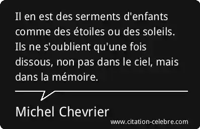 Il en est des serments d'enfants comme des étoiles ou des soleils. Ils ne s'oublient qu'une fois dissous, non pas dans le ciel, mais dans la mémoire.