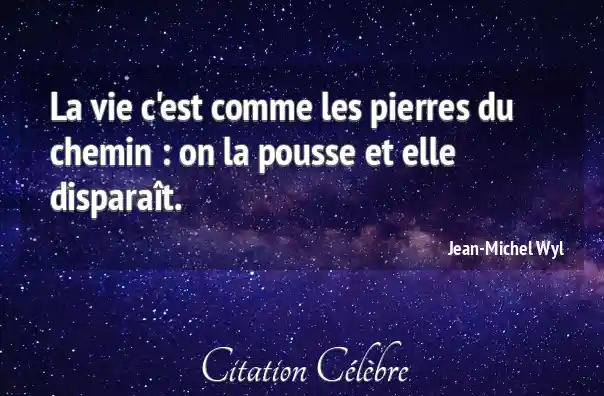 La vie c'est comme les pierres du chemin : on la pousse et elle disparaît.
