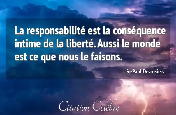 La responsabilité est la conséquence intime de la liberté. Aussi le monde est ce que nous le faisons.