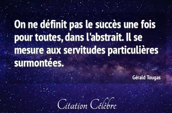 On ne définit pas le succès une fois pour toutes, dans l'abstrait. Il se mesure aux servitudes particulières surmontées.