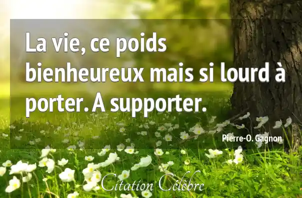 La vie, ce poids bienheureux mais si lourd à porter. A supporter.