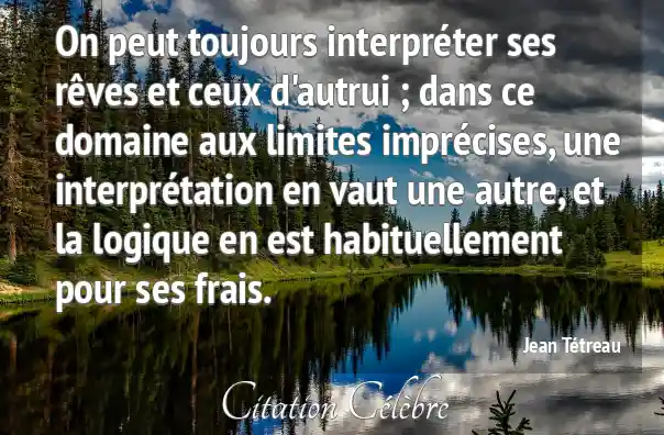 On peut toujours interpréter ses rêves et ceux d'autrui ; dans ce domaine aux limites imprécises, une interprétation en vaut une autre, et la logique en est habituellement pour ses frais.