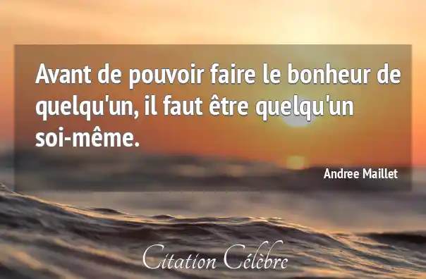 Avant de pouvoir faire le bonheur de quelqu'un, il faut être quelqu'un soi-même.