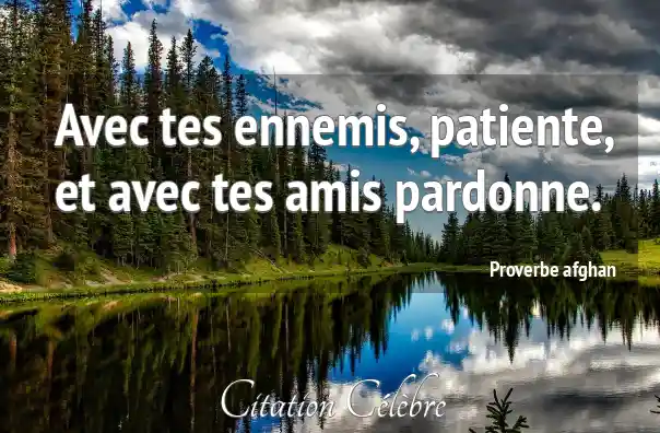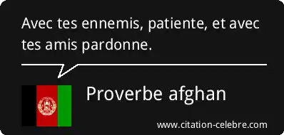 Proverbe  Afghan Amis : Avec tes ennemis, patiente, et avec tes amis pardonne....