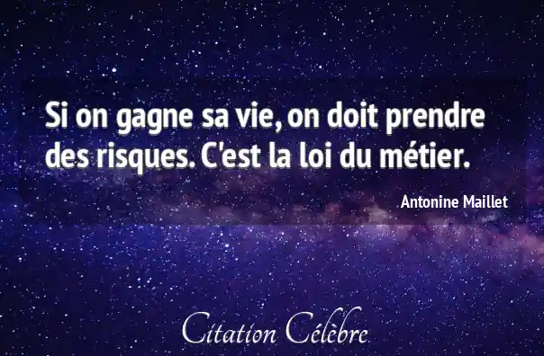Si on gagne sa vie, on doit prendre des risques. C'est la loi du métier.