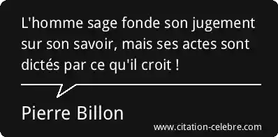 L'homme sage fonde son jugement sur son savoir, mais ses actes sont dictés par ce qu'il croit !