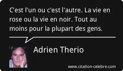 C'est l'un ou c'est l'autre. La vie en rose ou la vie en noir. Tout au moins pour la plupart des gens.